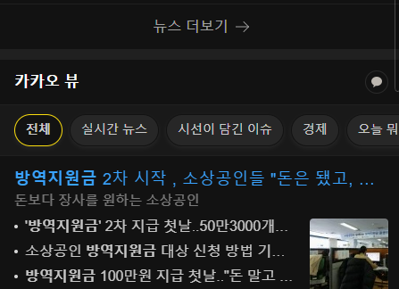 뉴스 더보기 아래에 통합웹이 아니라, '카카오 뷰'가 먼저 나온다.